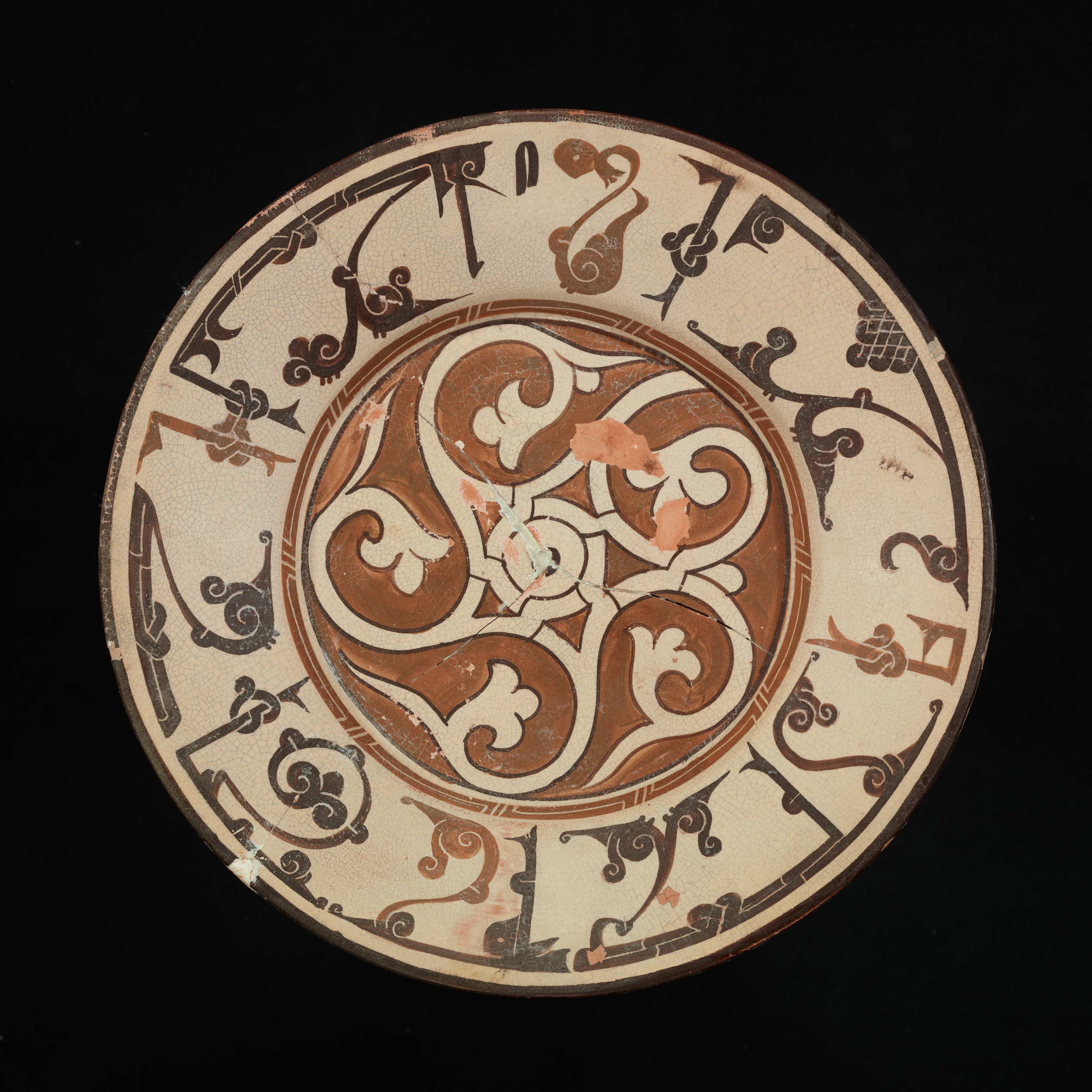 Earthenware, cream slip with light to dark brown brown slip