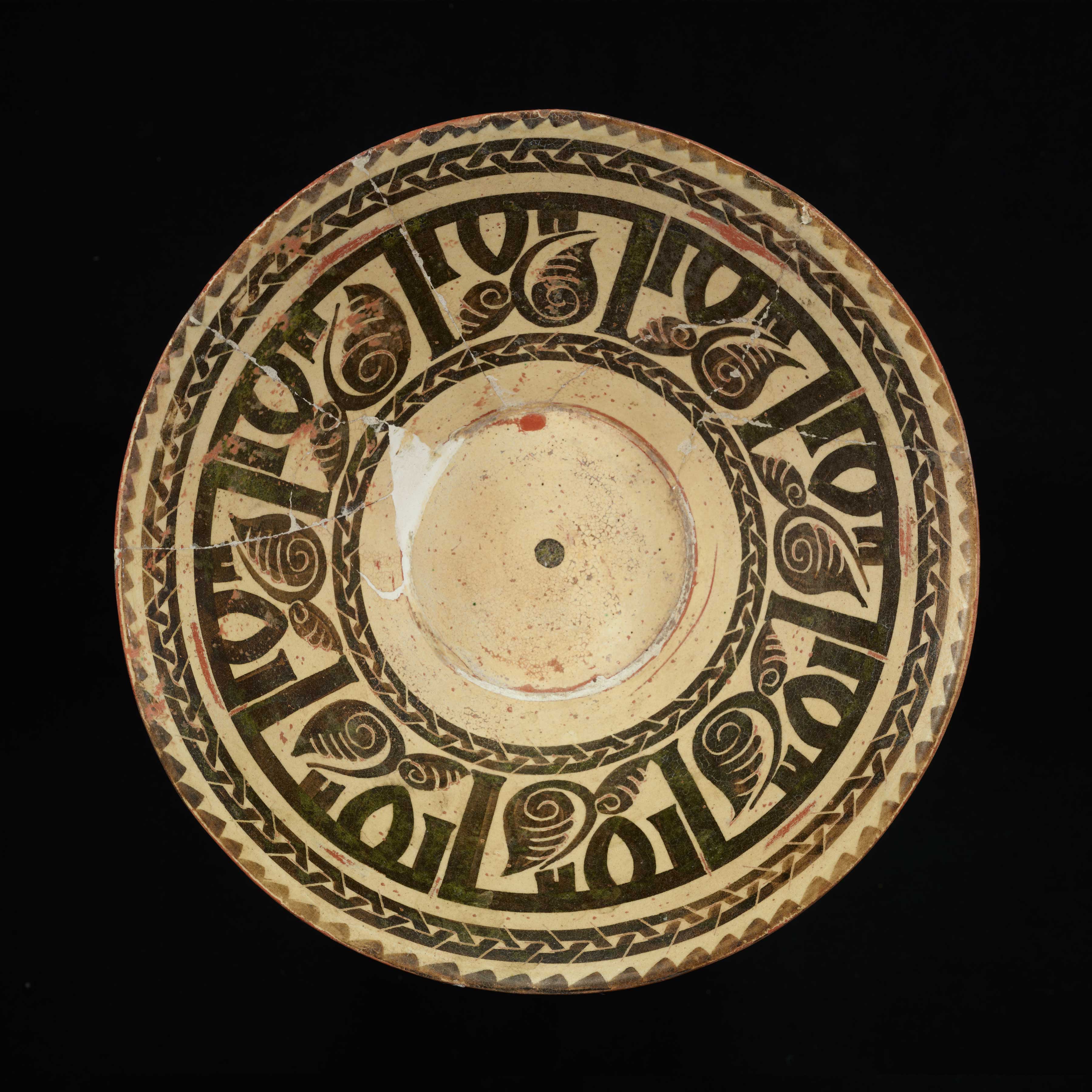 Earthenware, cream slip with brown decoration under a transparent glaze Eastern Iranian World, Khorasan, probably Nishapur, late 10th - mid 11th century AD Rim 29.5 cm, Height 10.8 cm, Base 9 cm