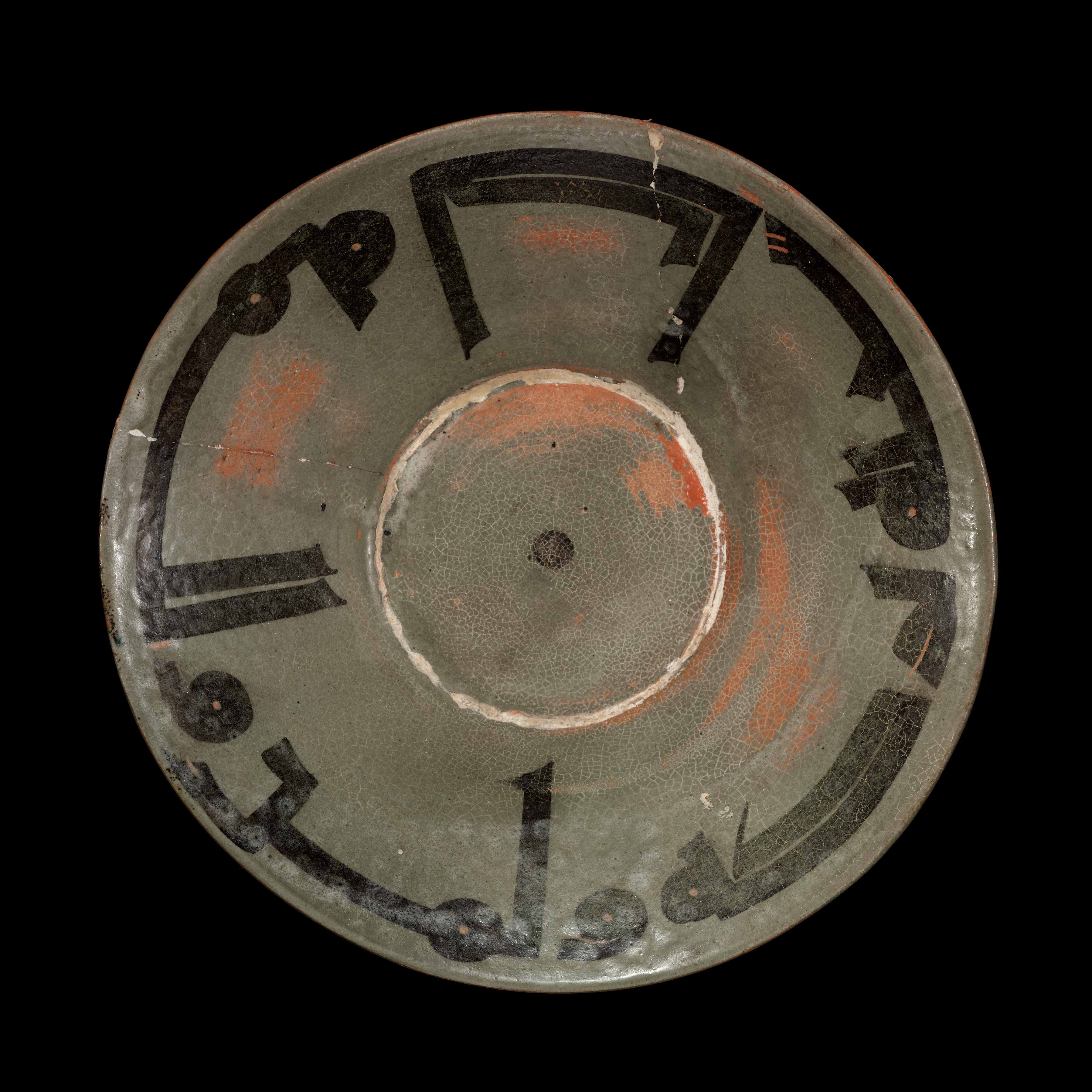 Earthenware, grey slip with black slip decoration under a colourless glaze Eastern Iranian World, Samanid (819 - 999 AD), 10th century AD Rim 24.5 cm, Height 7.5 cm, Base 9.3 cm
